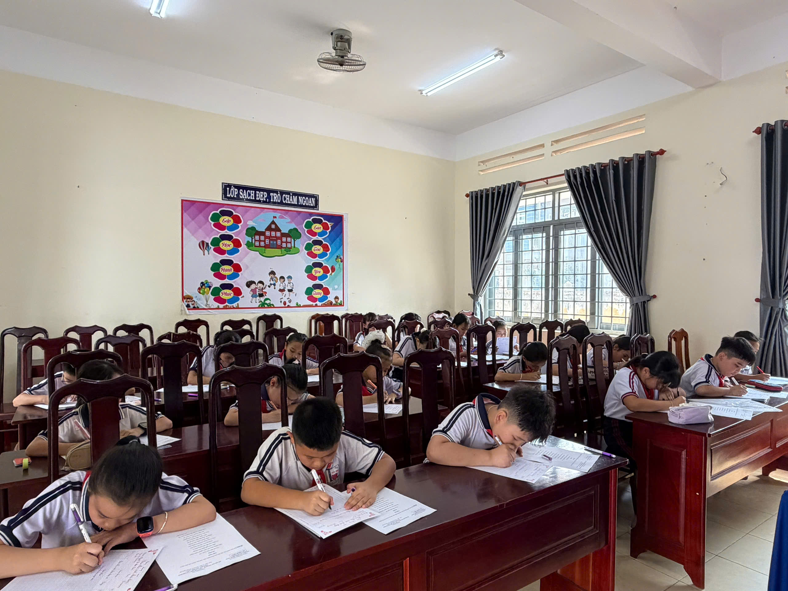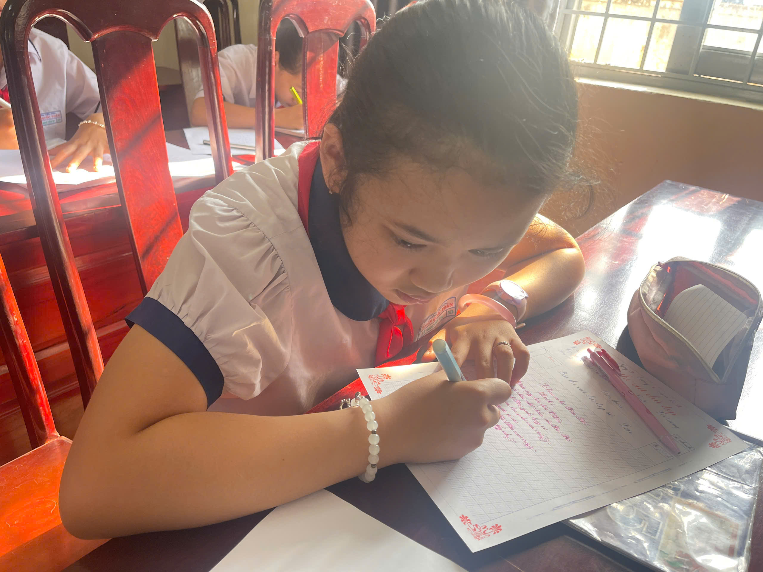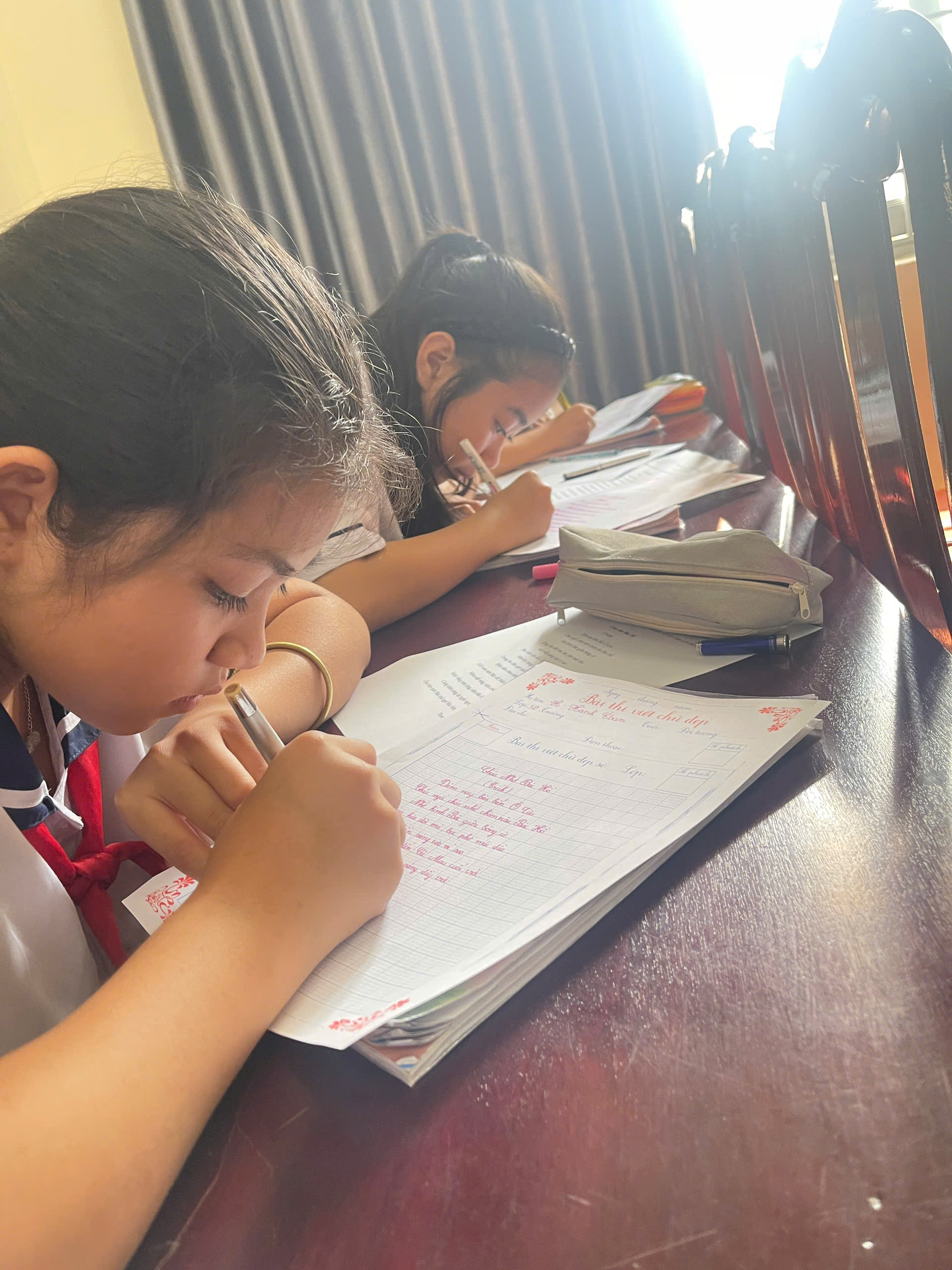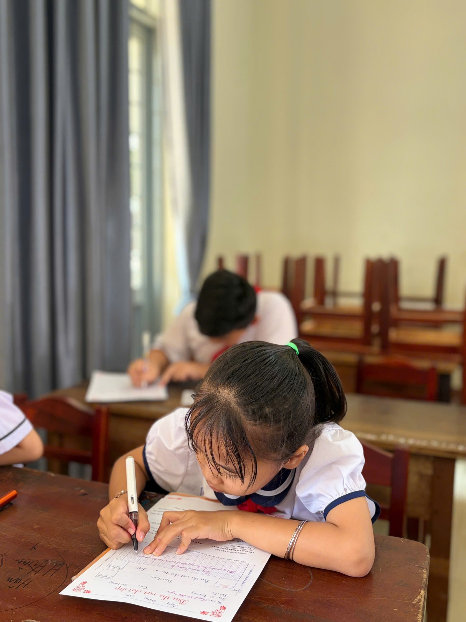 Giữa nhịp sống hiện đại của kỷ nguyên số, việc cầm cây bút, nắn nót từng nét chữ vẫn mang một vẻ đẹp diệu kỳ và tĩnh lặng. Bước vào phòng thi, ta như lạc vào một thế giới của sự tập trung cao độ. Ở đó, các em học sinh không chỉ viết chữ, mà đang gửi gắm cả tâm hồn mình vào từng dòng thơ, đoạn văn.