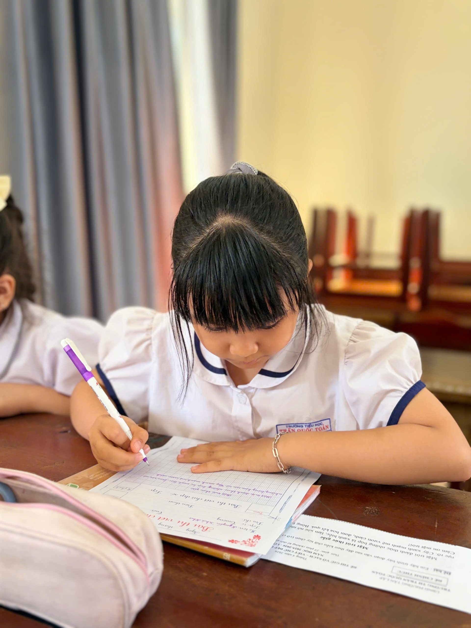 ✨ Có một vườn hoa không tỏa hương bằng sắc thắm, mà tỏa ngát bằng những nét mực xanh; có một hành trình không đo bằng dặm dài, mà đo bằng sự kiên trì trên từng trang giấy trắng. Đó chính là không khí đầy cảm xúc của Hội thi “Giữ vở sạch – Chữ viết đẹp” cấp trường năm học 2025 – 2026 tại mái trường Tiểu học Trần Quốc Toản diễn ra trong hai ngày 09 và 10 tháng 4 vừa qua.