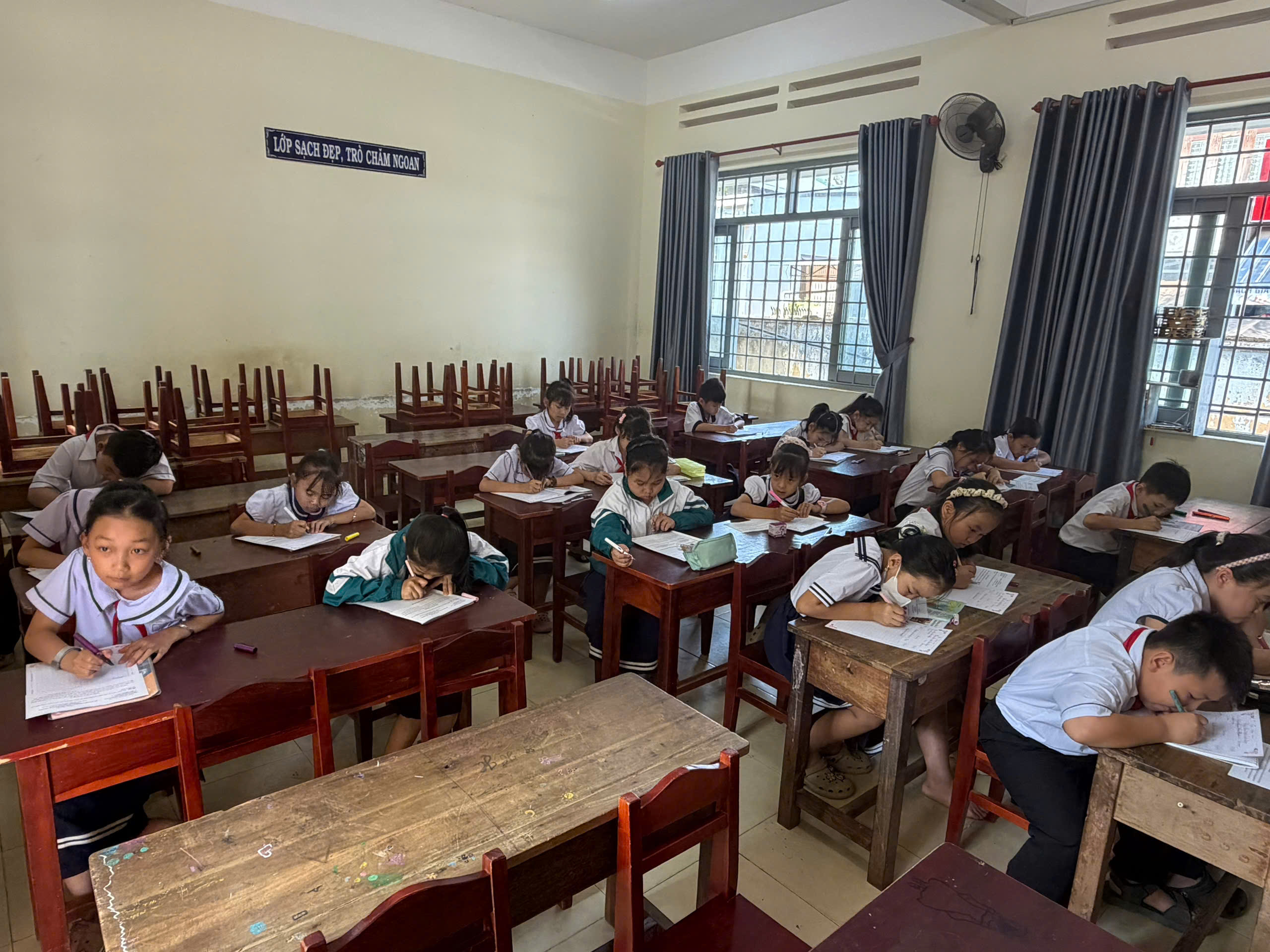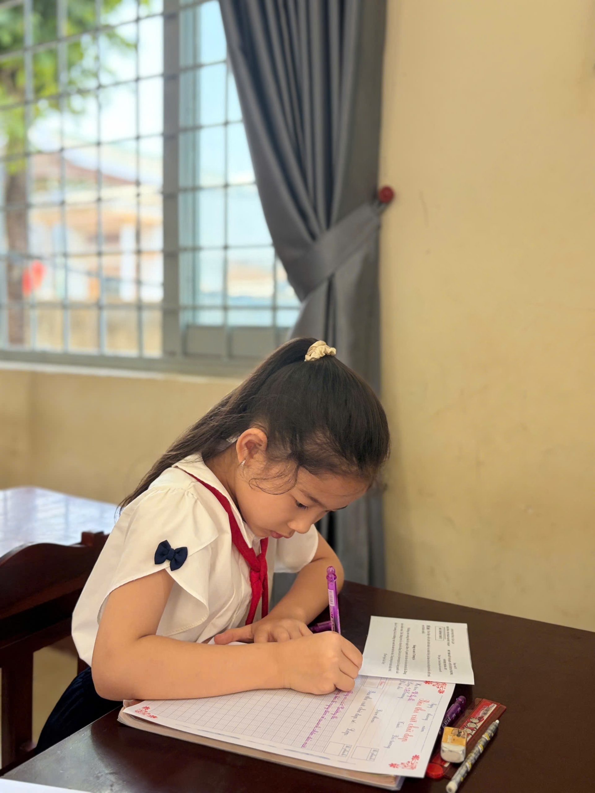 Đó là những cuốn vở phẳng phiu, không một vết bẩn, không một góc quăn. Từng dòng kẻ, từng cách trình bày khoa học chính là minh chứng rõ nét nhất cho tinh thần kỷ luật, sự cẩn thận và lòng hiếu học của học sinh dưới mái trường thân yêu này.