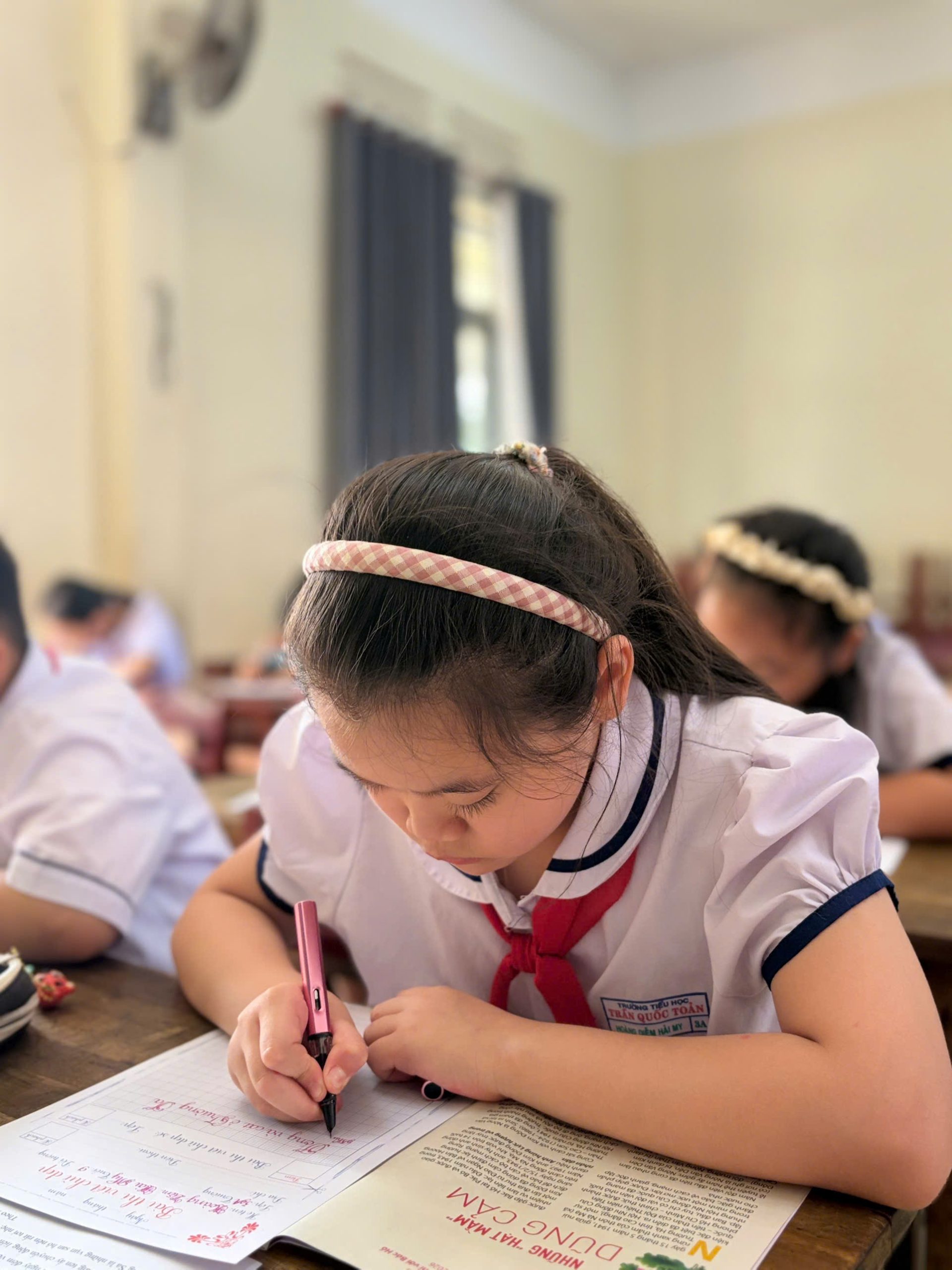 Những đôi tay nhỏ nhắn nâng niu cây bút, điều khiển từng nét thanh mỏng manh như tơ trời, từng nét đậm vững chãi như ý chí. Mỗi trang giấy trắng dần hiện lên những dòng chữ đều tăm tắp, thanh thoát như những cánh hoa đang độ khai nhụy.