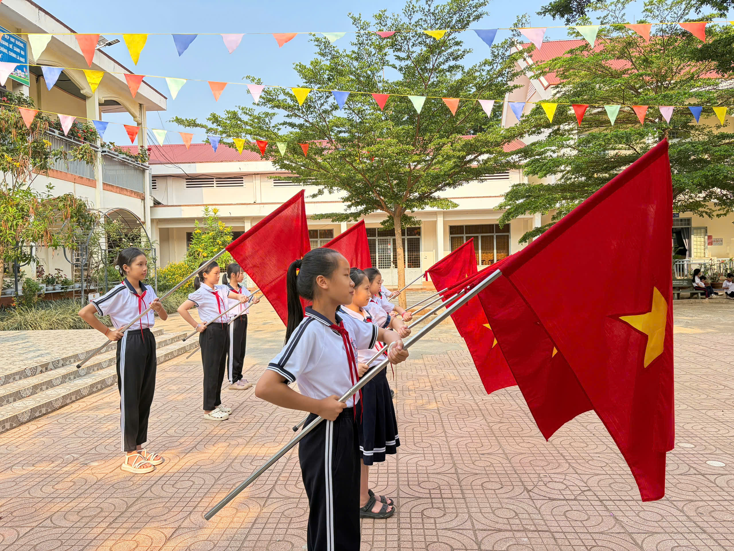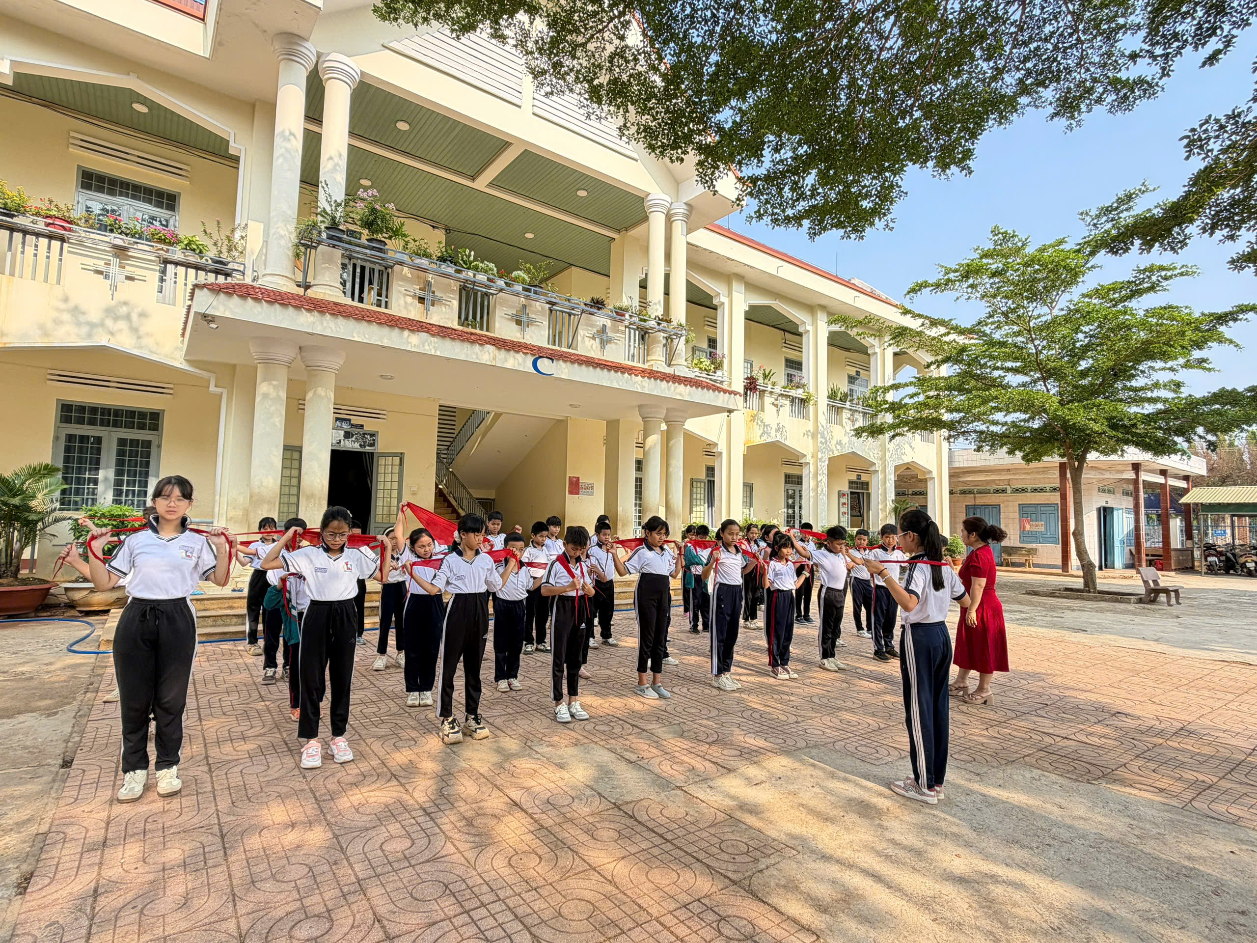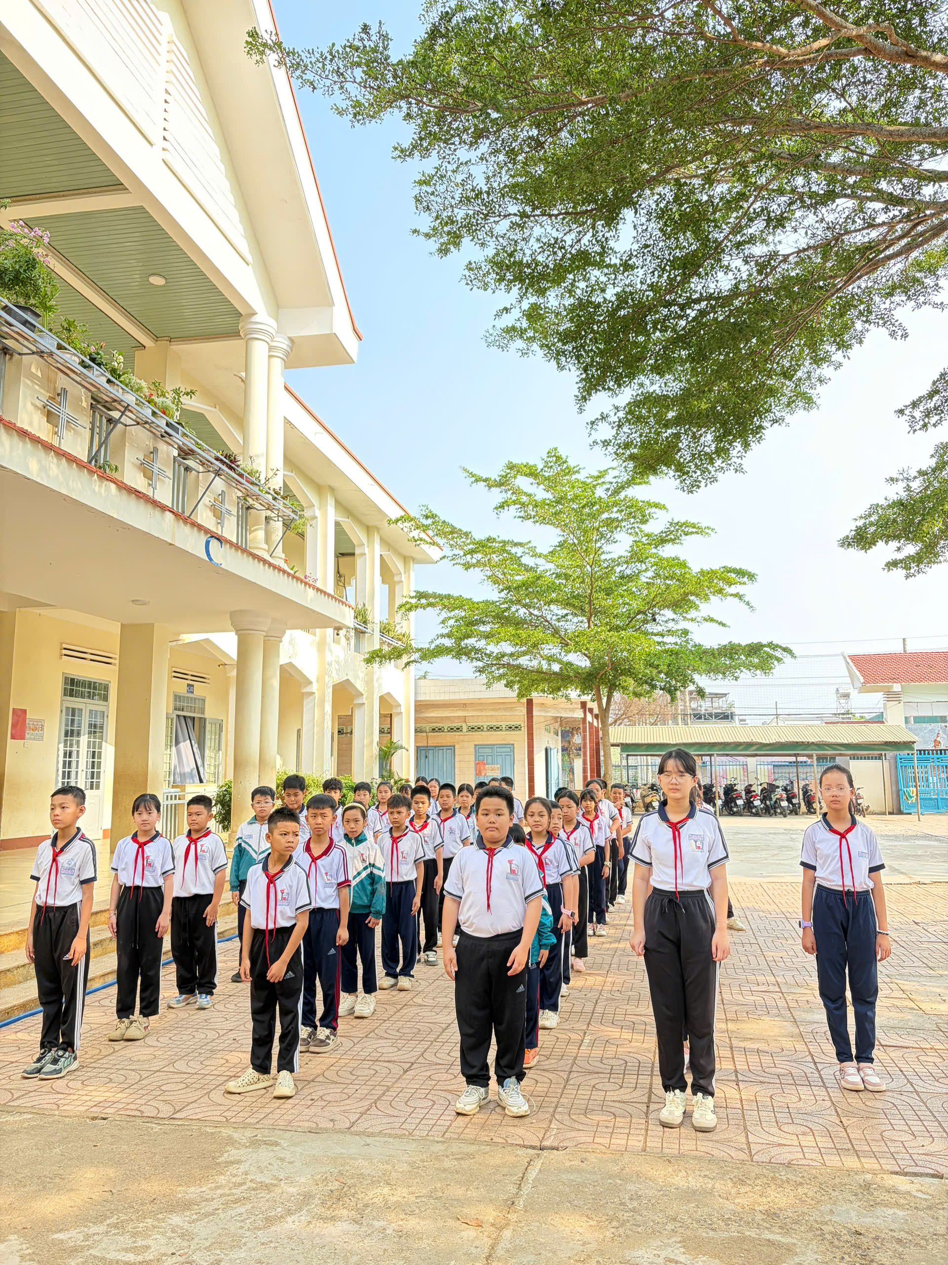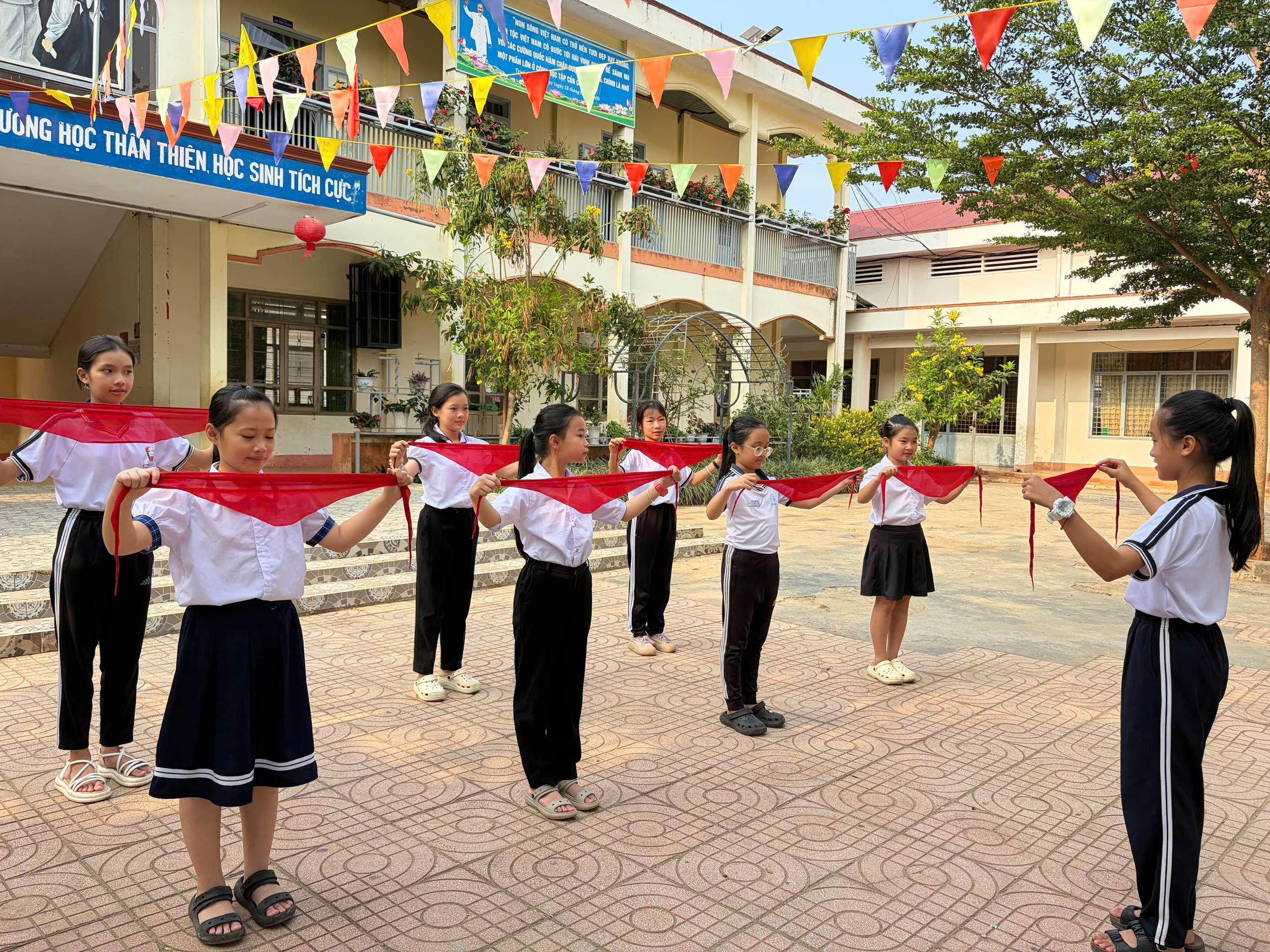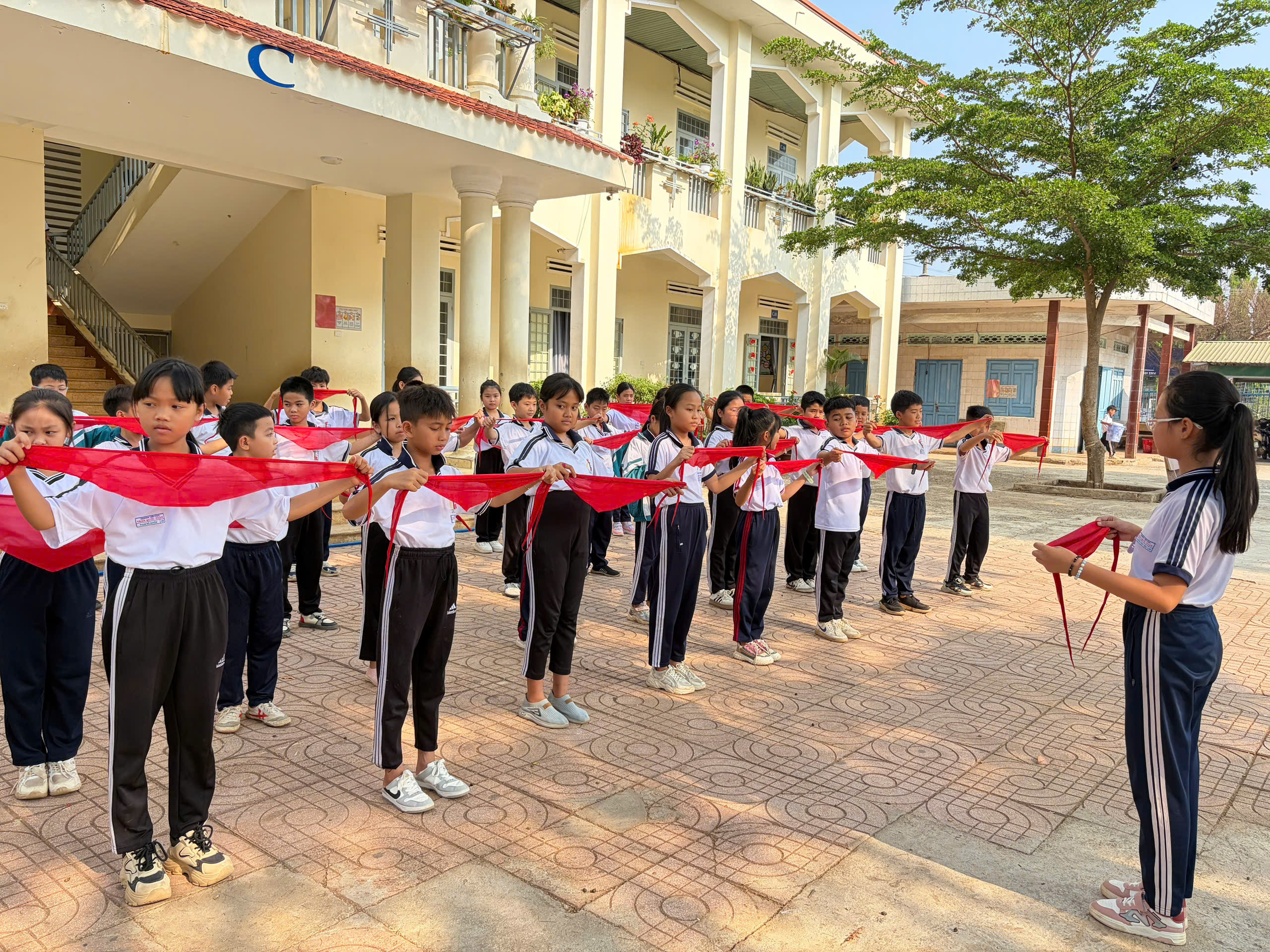 🇻🇳 Nghi thức Đội chuẩn mực: Ôn luyện các động tác cá nhân tại chỗ và di động, cách thắt – tháo khăn quàng đỏ. Tiếng trống Đội vang lên giòn giã khi các em thực hành các bài trống quy định (Chào cờ, Hành tiến, Chào mừng).