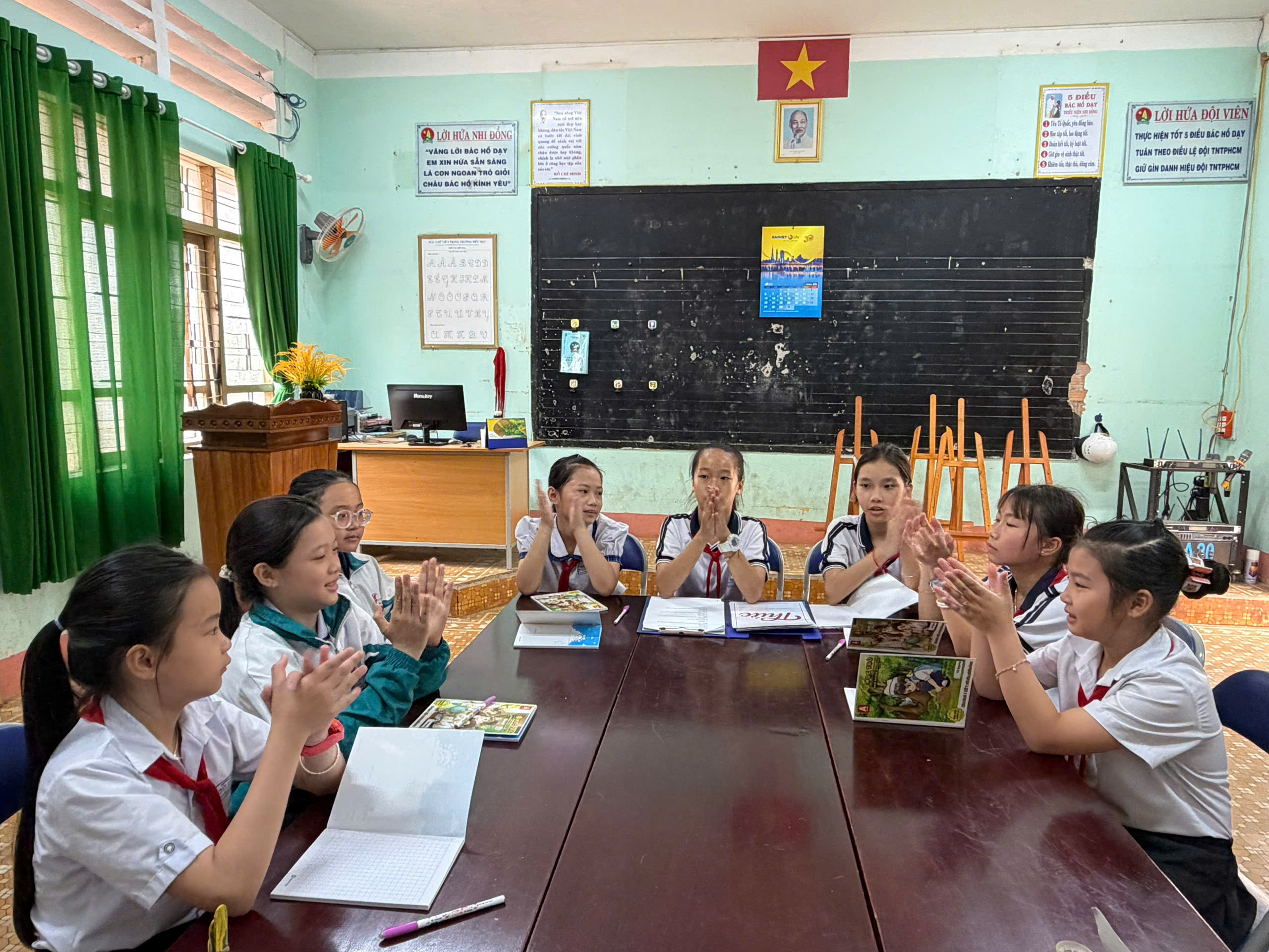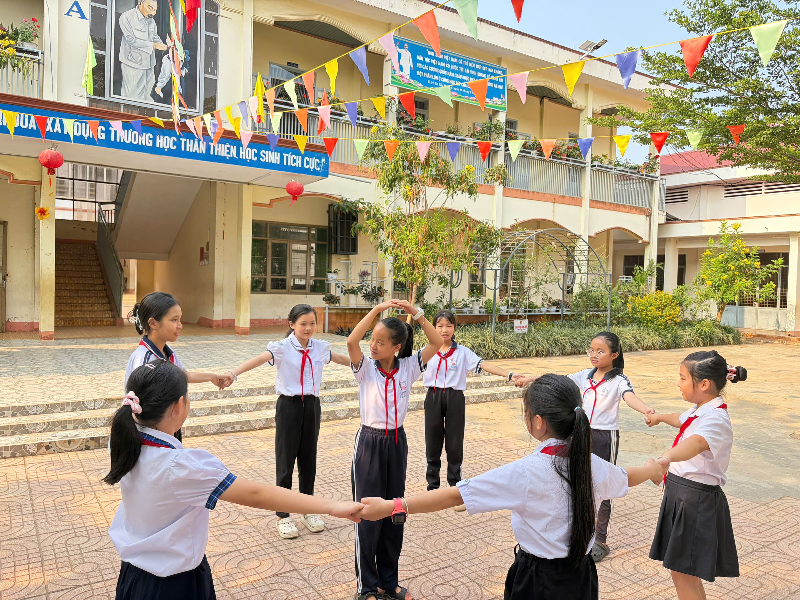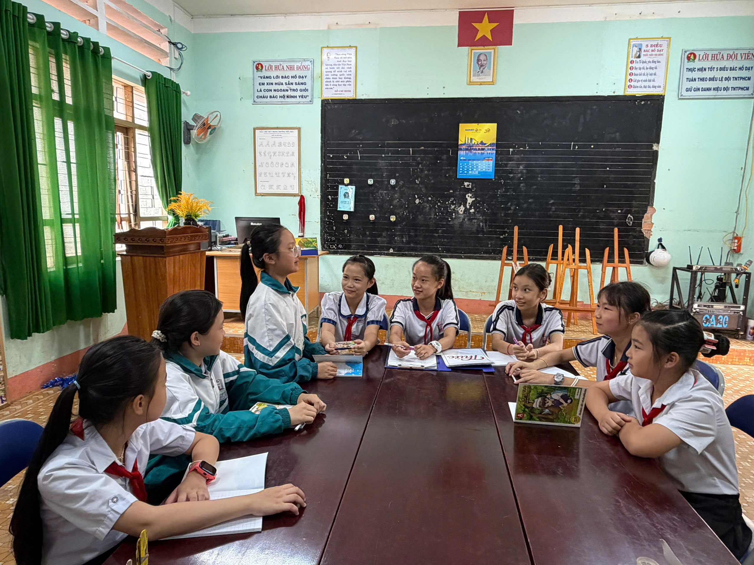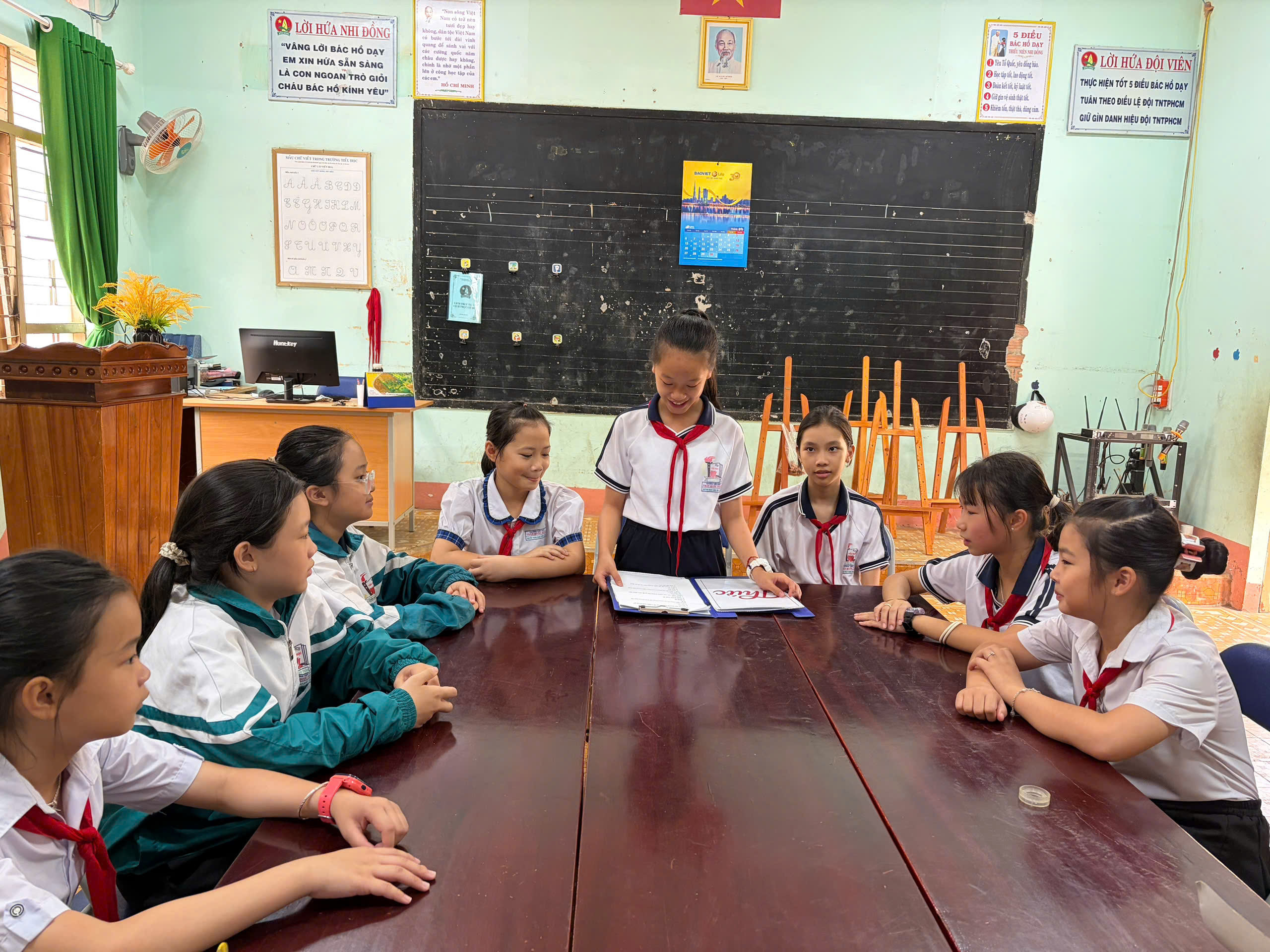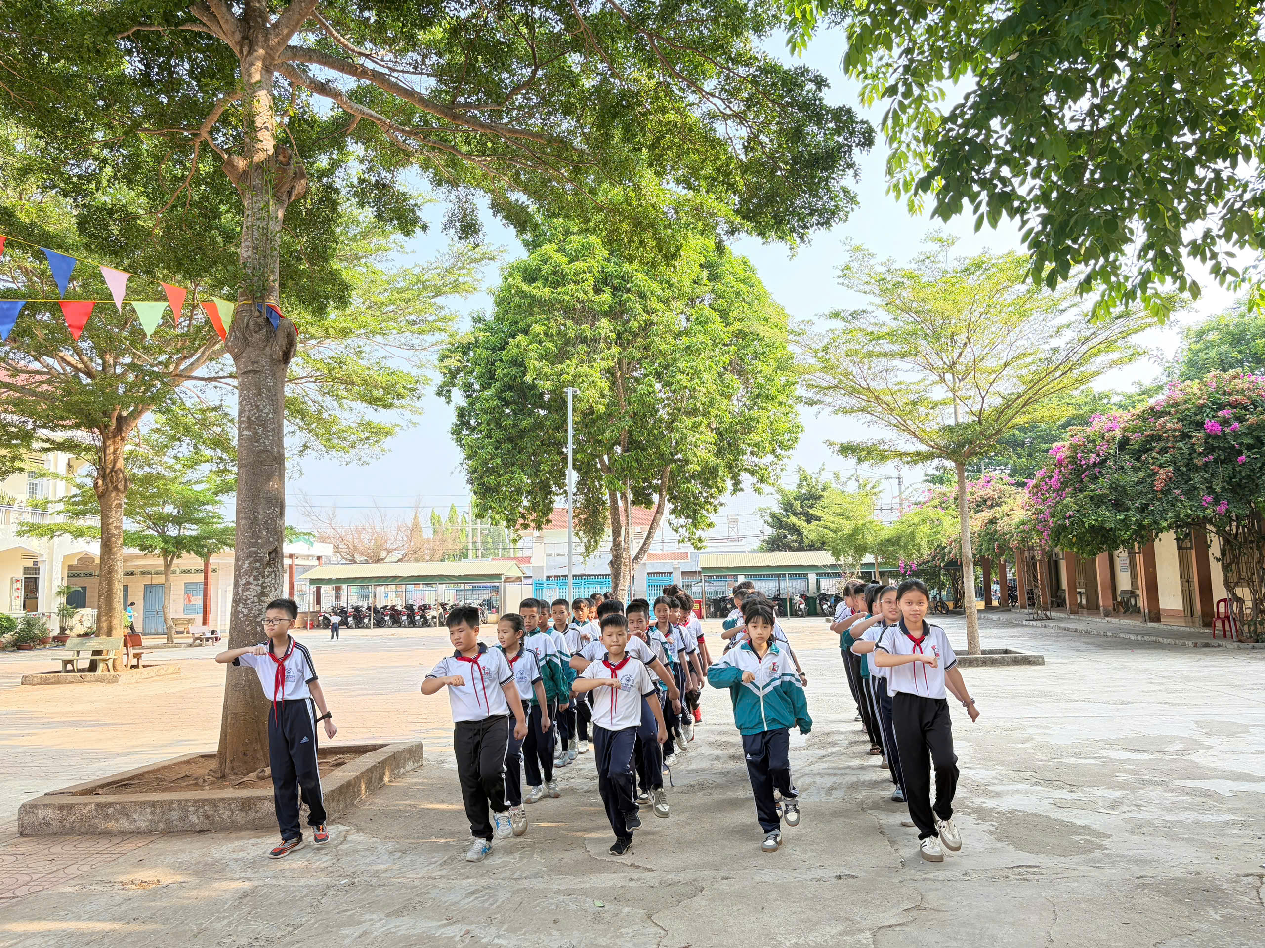 🇻🇳 Nghi thức Đội chuẩn mực: Ôn luyện các động tác cá nhân tại chỗ và di động, cách thắt – tháo khăn quàng đỏ. Tiếng trống Đội vang lên giòn giã khi các em thực hành các bài trống quy định (Chào cờ, Hành tiến, Chào mừng).