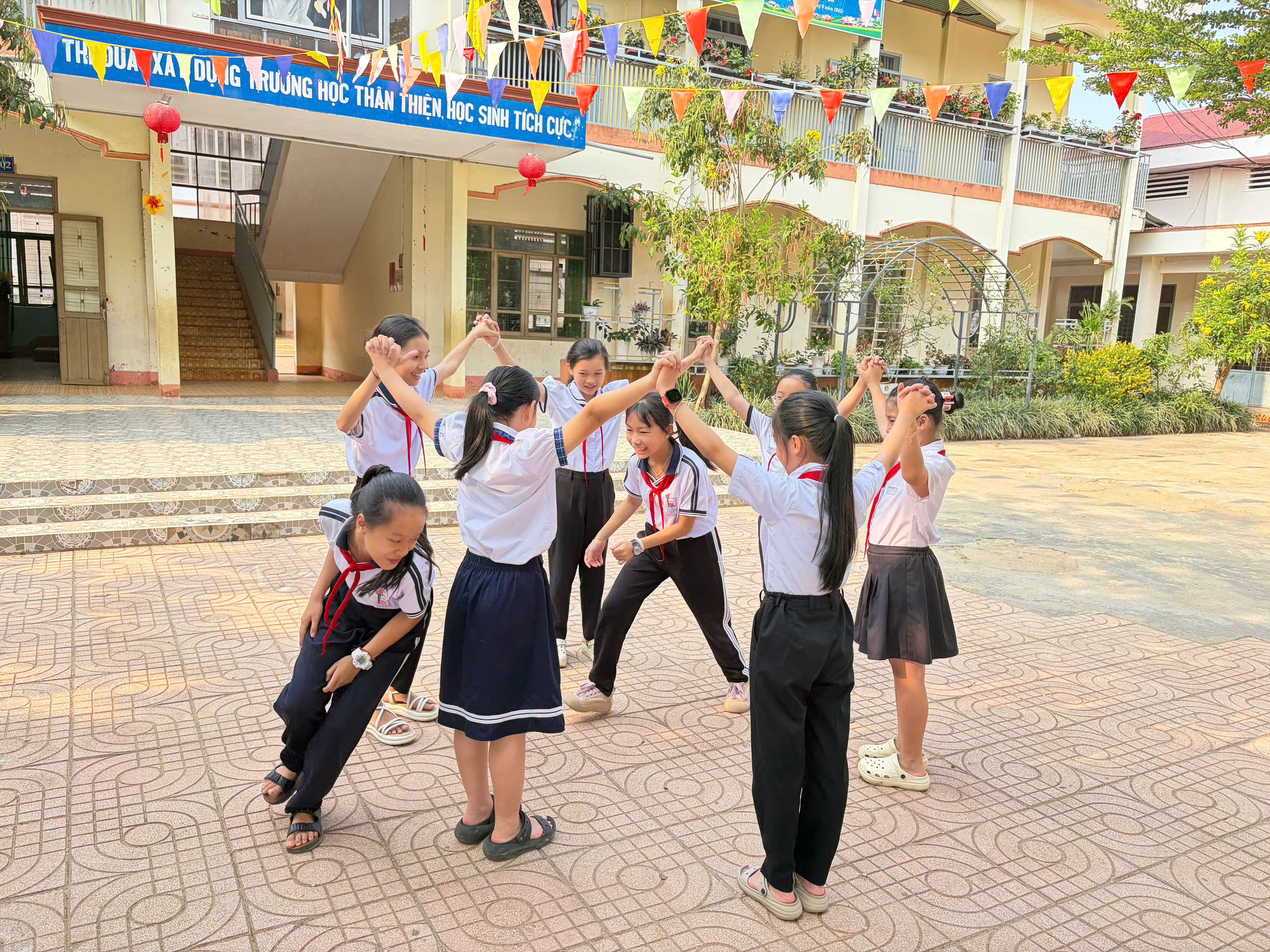 🎤 Chặng 4 – Sinh hoạt tập thể: Các em cùng nhau hòa mình vào các điệu dân vũ sôi động và các trò chơi vận động đòi hỏi tinh thần đoàn kết, phối hợp ăn ý.