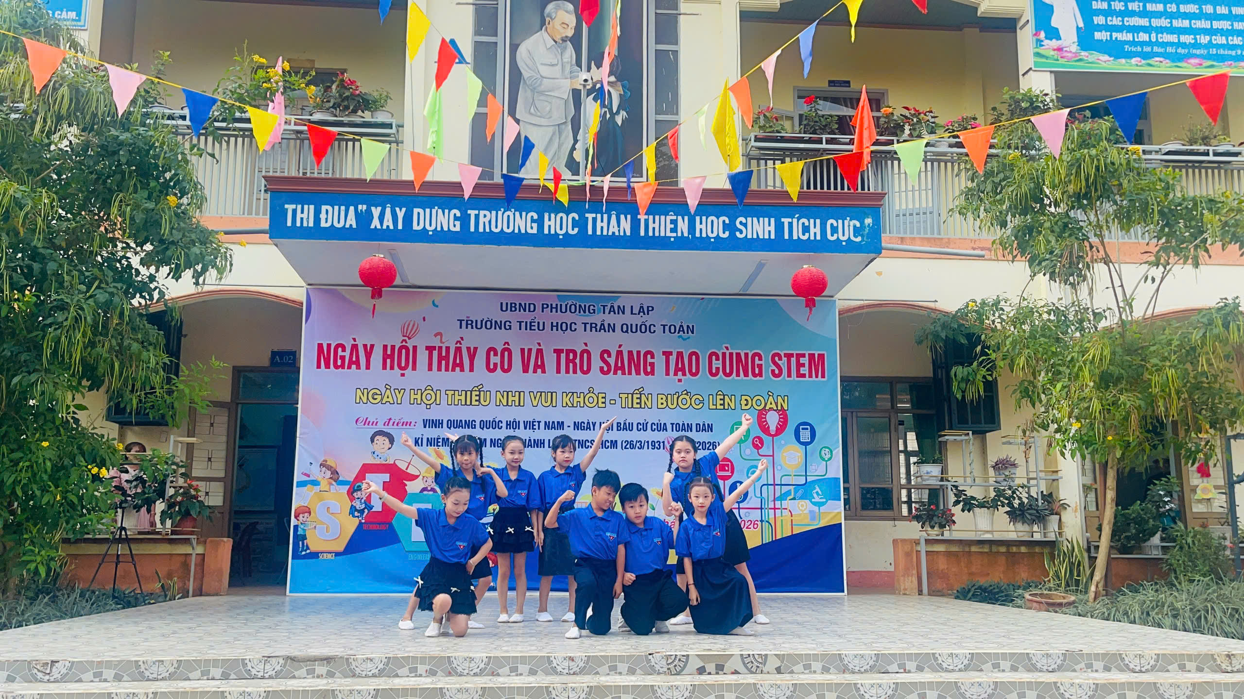 Hòa chung không khí sôi nổi của tuổi trẻ cả nước, sáng ngày 23/3/2026, trường Tiểu học Trần Quốc Toản đã tưng bừng tổ chức Ngày hội “Thiếu nhi vui khỏe – Tiến bước lên Đoàn”. Đây là hoạt động ý nghĩa chào mừng kỷ niệm 95 năm Ngày thành lập Đoàn TNCS Hồ Chí Minh và hướng tới cuộc bầu cử Đại biểu Quốc hội khóa XVI.