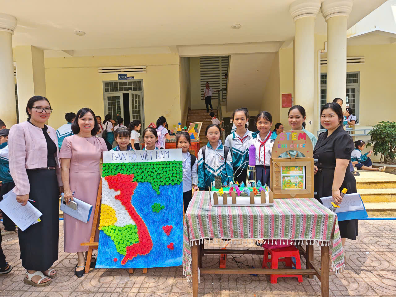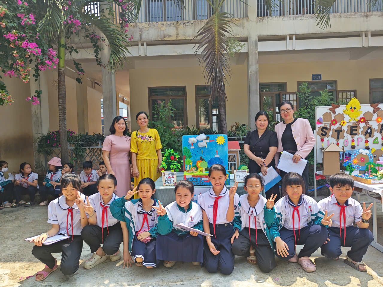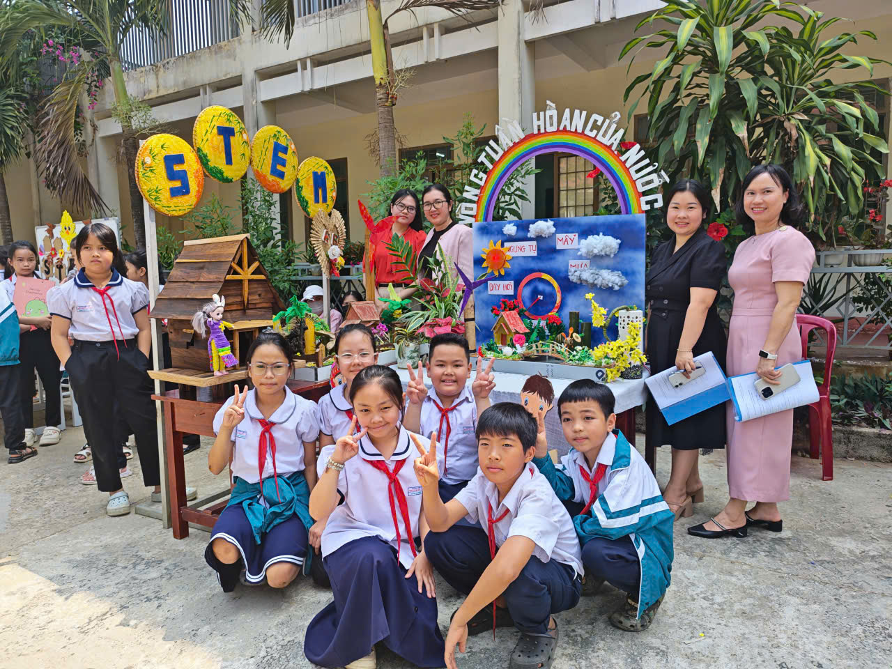 Mở đầu chuỗi hoạt động, vào ngày 21/3, sân trường đã trở thành một “phòng thí nghiệm khổng lồ” đầy thú vị. Các em học sinh đã cùng nhau tham gia hoạt động Sáng tạo sản phẩm STEM.