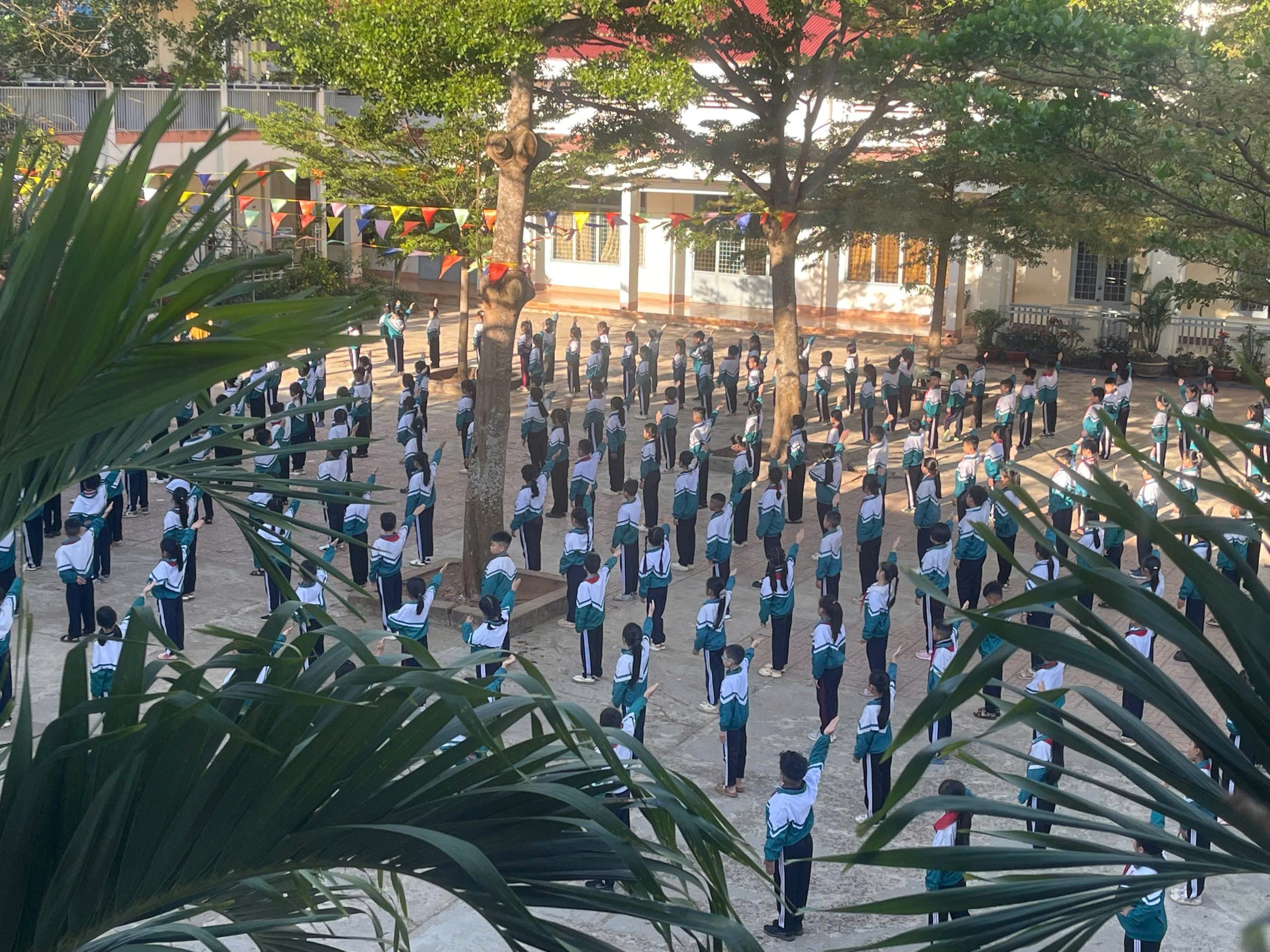 Chương trình mở đầu đầy trang nghiêm với Lễ Chào cờ theo đúng Nghi thức Đội. Ngay sau đó, bầu không khí sân trường trở nên bùng nổ với các tiết mục văn nghệ đặc sắc và màn đồng diễn “Hát vang trong kỷ nguyên mới” trên nền nhạc sôi động đã tạo nên một bức tranh nghệ thuật sống động. Những động tác khỏe khoắn, đều tăm tắp chính là lời khẳng định cho tinh thần “Vui khỏe – Học tập tốt” của các em học sinh dưới mái trường mang tên người anh hùng nhỏ tuổi Trần Quốc Toản.