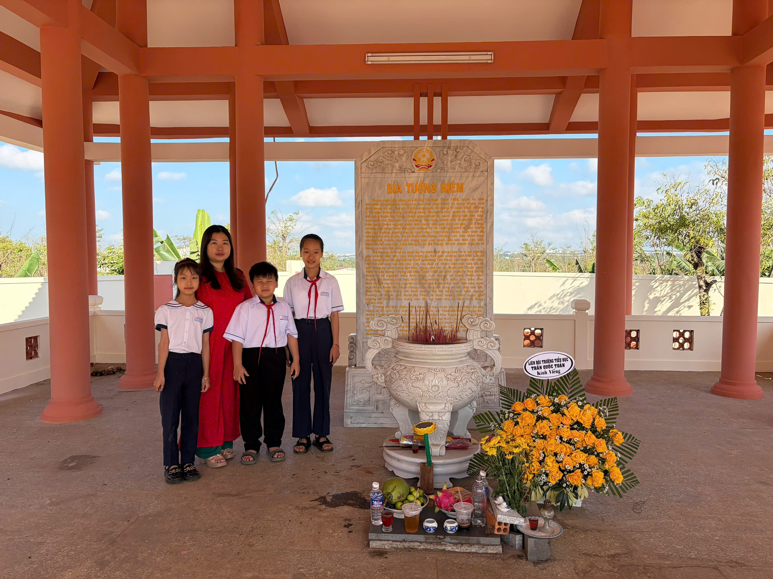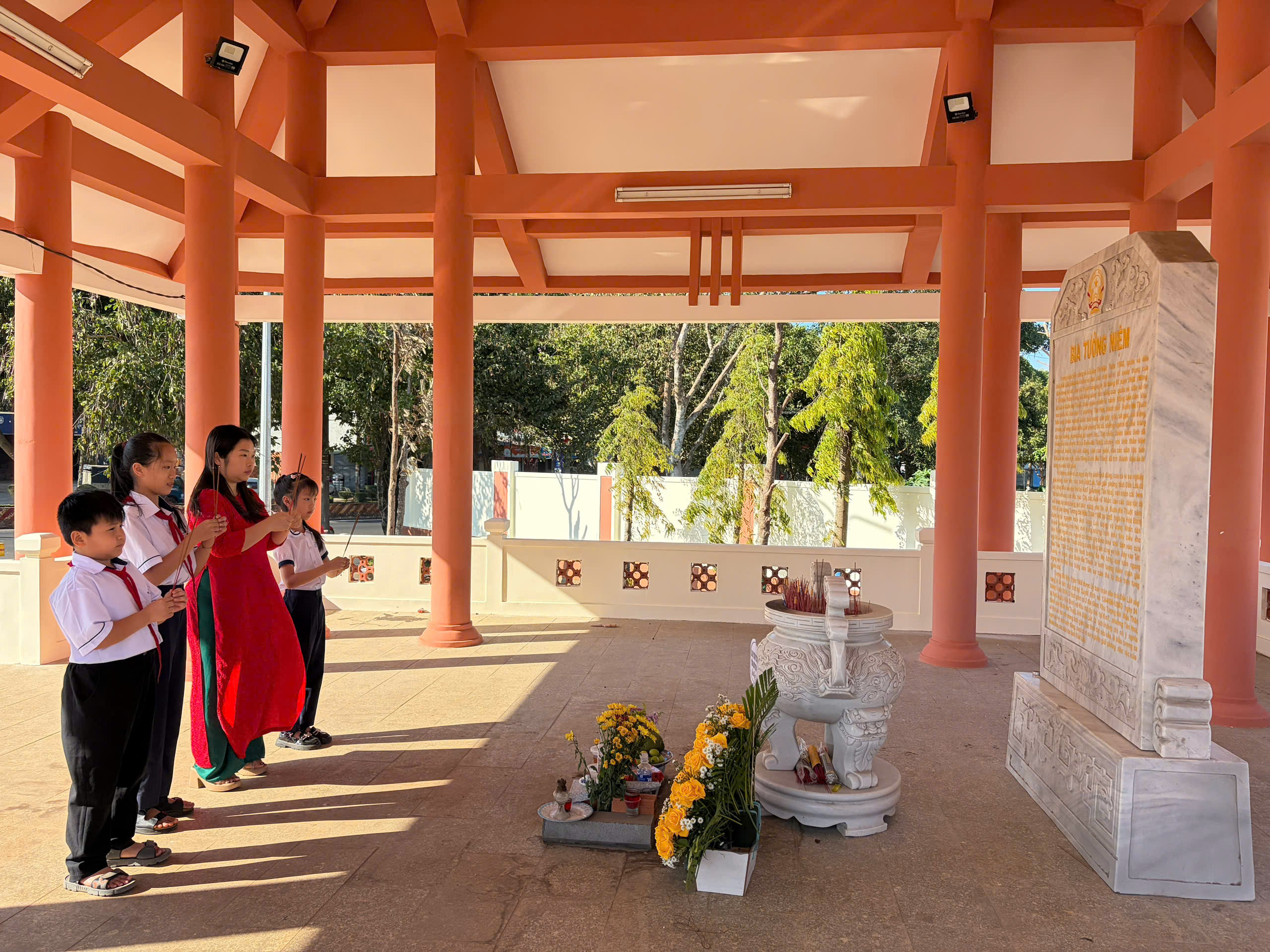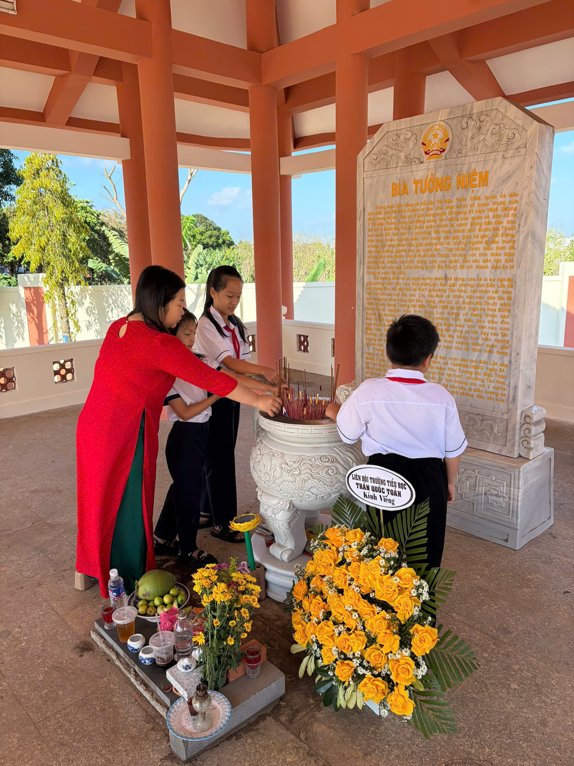 Trong không khí trang nghiêm, những nén hương thơm và lẵng hoa tươi thắm đã được dâng lên để tưởng nhớ công ơn các anh hùng liệt sĩ. Hoạt động này không chỉ bồi đắp lòng biết ơn sâu sắc mà còn là lời hứa quyết tâm học tập, rèn luyện của thế hệ măng non để xứng đáng với sự hy sinh của cha ông.